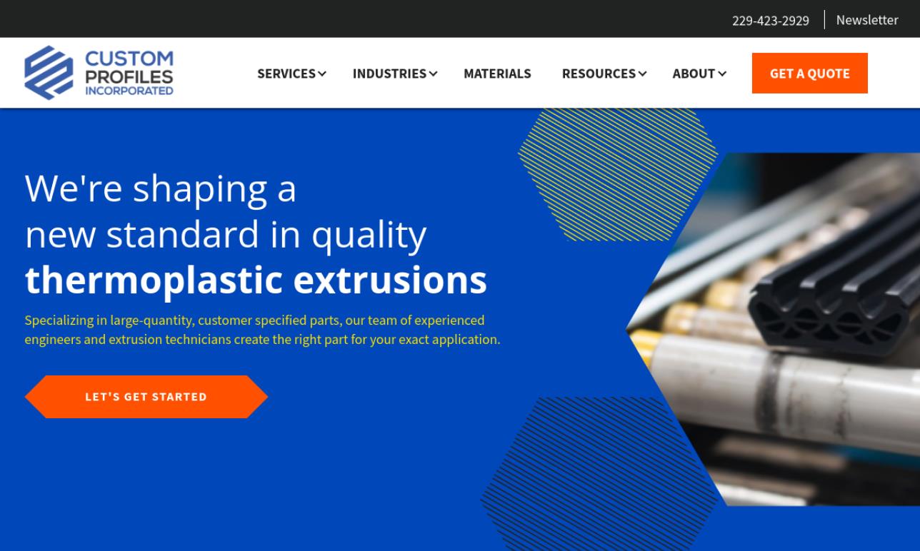 Fitzgerald, GA | 229-423-2929At Custom Profiles, Inc., our foundation in plastic extrusions is built upon a heritage of innovation, precision, and unwavering dedication to exceeding customer expectations. We've established ourselves as leaders in the industry, known for our commitment to delivering high-quality solutions. Our core competency lies in creating a diverse range of plastic extrusions that cater to the unique and evolving needs of various industries. From intricate profiles to tailored designs, we harness cutting-edge technology and the collective expertise of our skilled team to ensure that every project we undertake reflects the pinnacle of precision and excellence. Our product portfolio spans a wide spectrum of applications across diverse sectors. We specialize in manufacturing extruded plastic components for industries such as construction, automotive, electronics, marine, and beyond. Whether it's resilient PVC profiles for architectural applications, specialized ABS components for automotive use, or custom extrusions for marine equipment, our capabilities cover an extensive range of requirements with finesse and technical mastery. At Custom Profiles, Inc., we stand ready to take on new challenges, drive innovation, and continually redefine the benchmarks in plastic extrusions. Our journey is marked by an unyielding pursuit of excellence, and we invite you to partner with us as we innovate and deliver exceptional solutions in the realm of plastic extrusion.